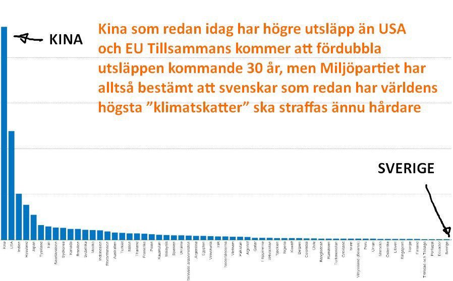 ”Jag tycker att vi ska värna om klimatet. Om vi ska lyckas med det krävs mindre av domedagsprofetior och mer av konkreta åtgärder. Vi kan inte på något avgörande sätt påverka utsläppen globalt. Sverige står för knappt 2 promille (två tusendelar) av världens utsläpp av CO2.