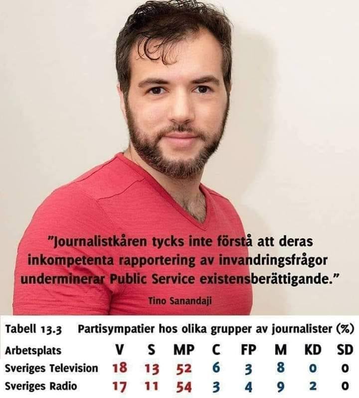 För sådär 50 år sedan började något hända. I 68-rörelsens kölvatten började en militant vänster ta över journalistutbildningen och vi började få en ström av vänsterindoktrinerade journalister som vällde ut från dessa skolor för att steg för steg ta över MSM. Journalistisk saklighet och integritet som i mina ögon personifierats av de tre O:na på sin tid (Ortmark, Orup och Olivecrona) trängdes undan till förmån för politisk propagandajournalistik till stöd för vänsterkrafterna i politiken. Beviset för denna utveckling fick vi bl.a. i forskaren Kent Asps studie år 2011 över partisympatierna hos journalistkåren. I den studien kan man se att 70% av journalisterna inom Public Service sympatiserar med de två vänsterextrema partierna Mp och V.